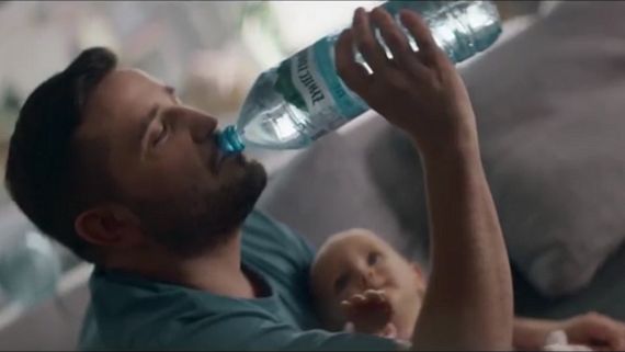 W reklamie pokazano jaką rolę pełni woda na przykładzie noworodka z ojcem, kobiety w ciąży i uczennicy.