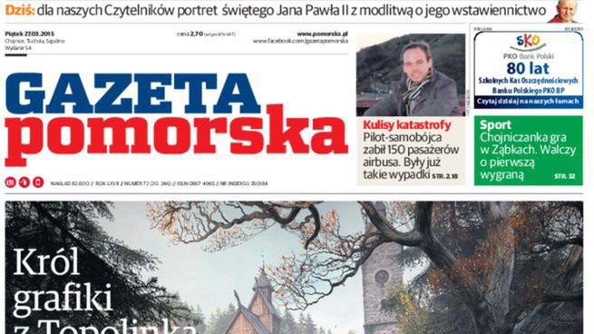 Średnia sprzedaż ogółem „Gazety Pomorskiej” (Polska Press Grupa) w I półroczu 2015 roku wyniosła 42 054 egz., czyli o 8,76 proc. mniej, niż w analogicznym okresie rok wcześniej - pokazują dane Związku Kontroli Dystrybucji Prasy, opracowane przez portal Wirtualnemedia.pl. W I półroczu 2014 roku tytuł ten zajmował miejsce drugie.