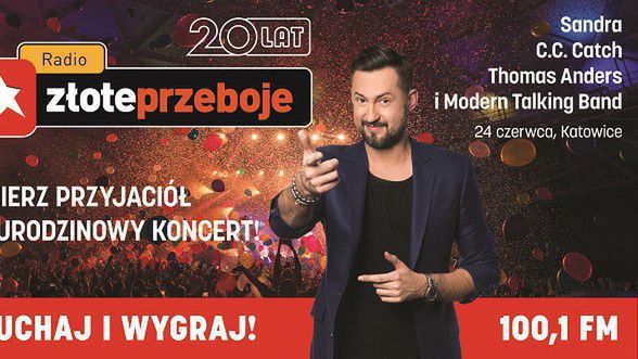 Urodzinowy koncert Radia Złote Przeboje odbędzie się w sobotę, 24 czerwca br. w katowickim Spodku. Na scenie pojawią się największe gwiazdy lat 80.: m.in. Sandra, C. C. Catch oraz Thomas Anders i Modern Talking Band.