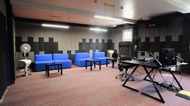 Bazą dla nowoczesnej przestrzeni studyjnej - o powierzchni 36 m2 - jest przestrzeń kontenerowa. Ściany zostały profesjonalnie wygłuszone, a wysokiej klasy wyposażenie daje możliwości realizowania nagrań wideo podcastów, ale także ich streamingu live w internecie. Atrakcyjnie wizualnie studio dostosowane jest do przeprowadzania rozmów nawet w gronie kilku osób, istnieje także możliwość rejestracji występów muzycznych, form koncertowych i performatywnych.