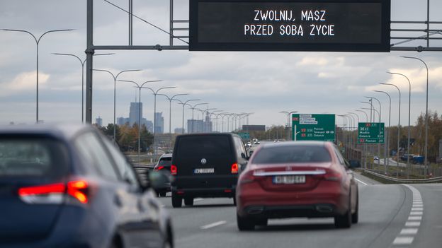 Od poniedziałku 27 października do 2 listopada na ekranach zmiennej treści na autostradach i drogach krajowych w całej Polsce będzie wyświetlało się hasło akcji: "Zwolnij, masz przed sobą życie".